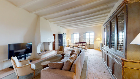 - Sala d'estar amb sostre de volta d'arc de canó, destinat una part a sala de lectura i TV, amb llar de foc, i l'altra a despatx amb sortida al pati interior