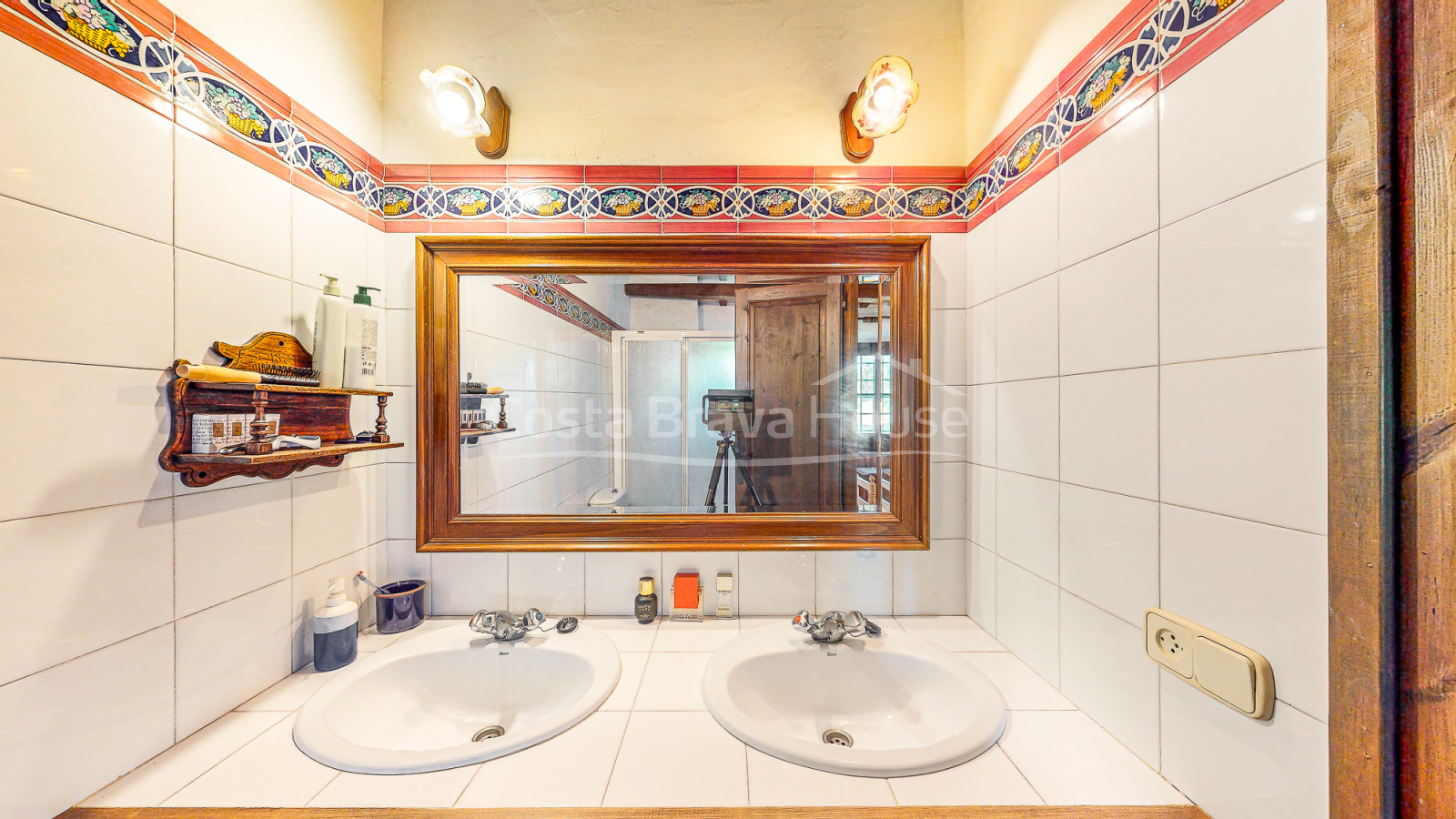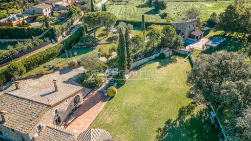 ** Superfície i Distribució ** Amb més de 1700 m² de superfície construïda, la propietat destaca per la seva masia principal de 500 m² distribuïda en dos nivells. Aquesta impressionant residència preserva elements arquitectònics tradicionals empordanesos com els sòls de tova catalana, sostre amb volta a la cuina i amb bigues de fusta exposades en diverses estances. Un ampli menjador i una contigua galeria amb generosos finestrals asseguren una il·luminació natural excepcional. A poca distància, una segona vivenda independent de 150 m² complementa l'oferta d'aquest luxós complex, que inclou un total de nou dormitoris i nou banys, ideals per acollir tant a una família nombrosa com a convidats.
