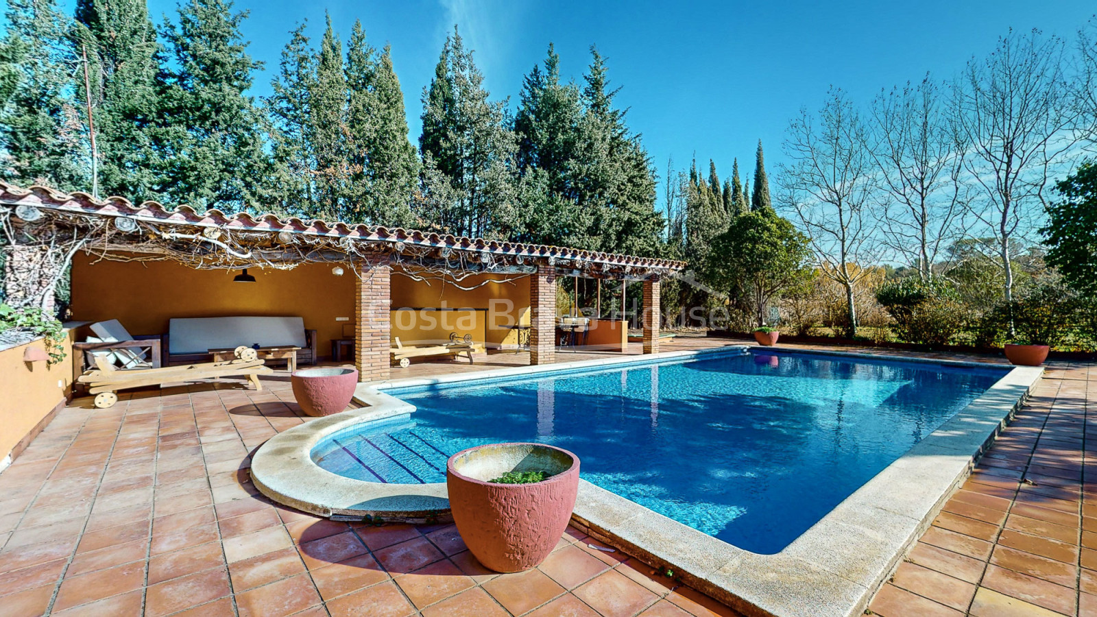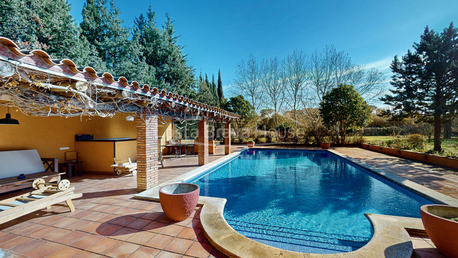 ** Espais Exteriors per al Gaudi Familiar ** Els exteriors de la finca ens conviden a gaudir d'activitats a l'aire lliure. Destaca la zona de piscina, amb porxo amb barbacoa, cuina i menjador d'estiu ideal per a gaudir de moments inoblidables a l'aire lliure, a més de l'estupenda piscina de 12x6 metres. El jardí es complementa amb altres zones dedicades a l'oci, com una segona barbacoa, un altre menjador d'estiu amb cel·losia de bruc i canyís, galliner i un hort, llocs tots perfectes per als amants de la vida al camp.