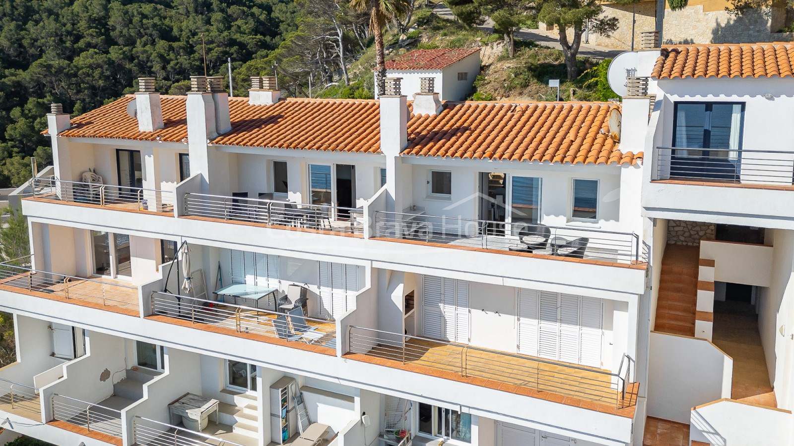 In one of the most peaceful and stunning areas of the Costa Brava, this apartment in La Borna (Begur) offers a unique setting with open sea views and rugged coastal scenery. It is part of an exclusive community of 17 homes located at the top of a cliff, ensuring maximum privacy and uninterrupted views. The property is on the top floor of the building, with easy street access via a few steps.