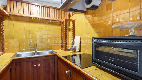 The interior features high-quality materials such as Catalan tuff and wooden flooring in some bedrooms. Exterior carpentry is made of wood with double glazing, ensuring thermal comfort alongside electric radiator heating and split air conditioning units on the second floor and loft. The ground floor preserves exposed stonework, reinforcing the property’s original character.