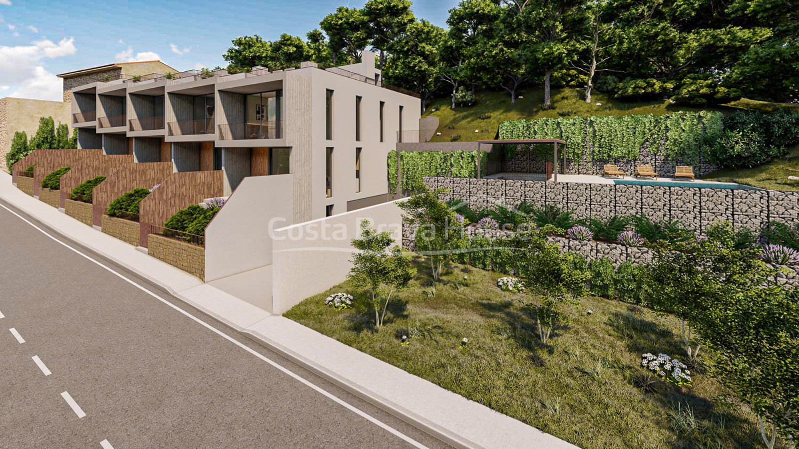 L’ensemble se distingue par son architecture aux lignes épurées, ses matériaux nobles et une esthétique parfaitement intégrée dans l’environnement naturel. Chaque maison dispose d’un accès indépendant depuis la rue, ainsi que d’une terrasse principale d’environ 18 m² et d’un vaste solarium sur le toit de plus de 36 m², tous deux avec une vue sur la mer. L’espace commun offre un agréable jardin paysager avec piscine, idéal pour profiter des journées les plus chaudes.