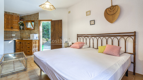 L’appartement annexe avec entrée indépendante comprend une chambre double, une kitchenette, un salon et une salle d’eau avec douche. Parfait pour accueillir des invités, du personnel ou pour la location touristique. La maison repose sur un vide sanitaire qui protège de l’humidité et a été construite avec une qualité artisanale remarquable, “avec rigueur, dans un style suisse”, selon la propriétaire. Un étage supplémentaire pourrait être aménagé dans les combles, avec vue partielle sur la mer.