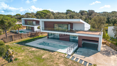 Découvrez cette villa au design contemporain dans le quartier distingué de Mas Nou à Platja d'Aro, qui nous offre un sanctuaire de luxe et de tranquillité. Cette splendide propriété est située sur un terrain de 1.378 m², offrant de belles vues qui se fusionnent avec le profil montagneux de la zone, créant une atmosphère idyllique qui capture l'essence de la vie sur la Costa Brava.