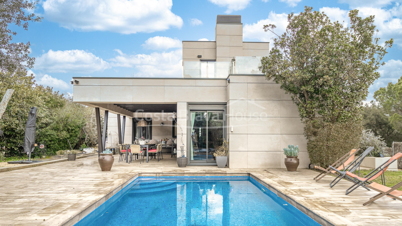Située dans un quartier résidentiel calme de Calella de Palafrugell, cette impressionnante villa au design contemporain offre intimité, exclusivité et confort absolu à seulement 15 minutes à pied du centre, de ses plages aux eaux cristallines et de sa zone commerçante animée. Construite en 2015 avec des matériaux de haute qualité, cette propriété allie des lignes modernes à un style méditerranéen chaleureux, créant une maison élégante et fonctionnelle, idéale pour ceux qui recherchent une résidence secondaire sur la Costa Brava.